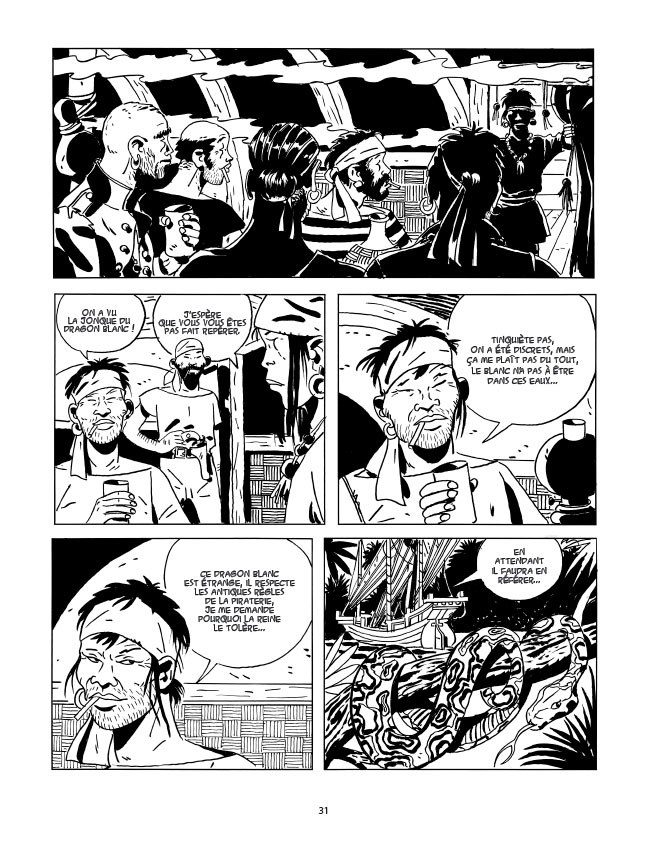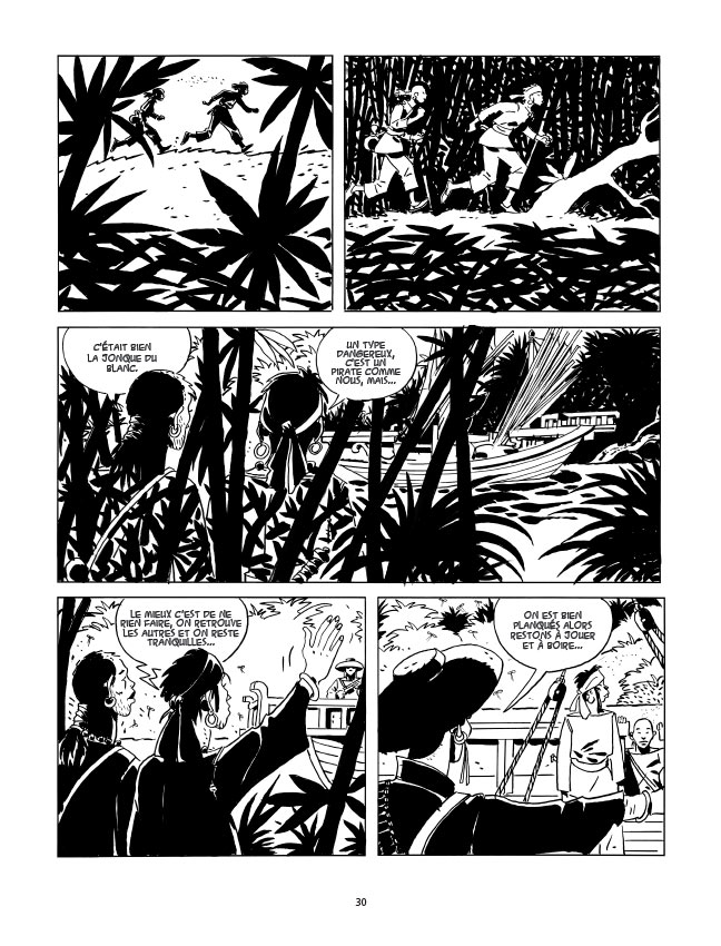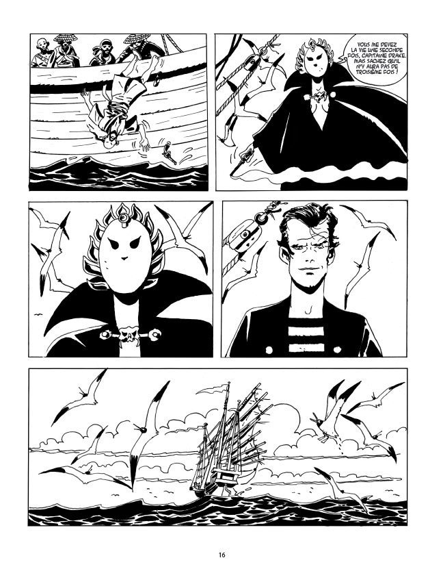 C’est à un pur récit d’aventures que nous convie l’auteur du Fanfaron ; une aventure avec des pirates et des femmes séduisantes et fatales.