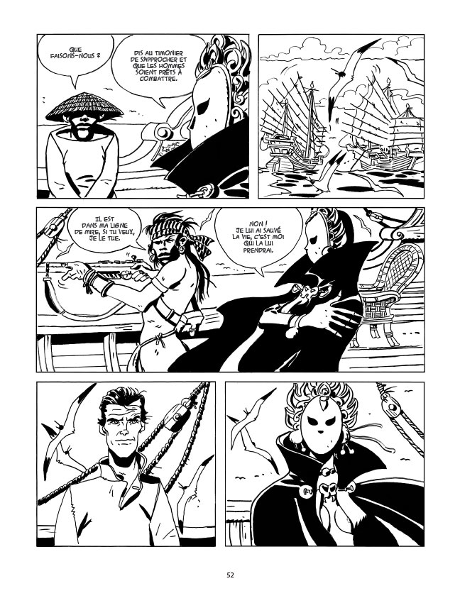 Libéré, nous allons le retrouver trois ans plus tard, en mer, à bord d’une jonque dont il est le capitaine. Il se dit mercenaire, tout comme ses hommes. Drake va secourir un homme, un baron, qui lui dit que des pirates esclavagistes ont enlevé sa fille.